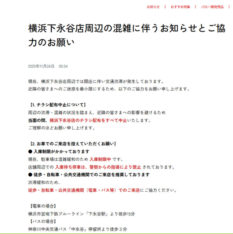 横浜下永谷店周辺の混雑に伴うお知らせとご協力のお願い