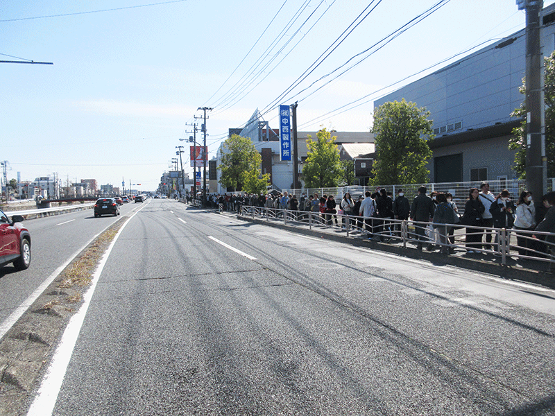当日は、開店前から多くのお客様にお並びいただき、気がつけば長い列に。